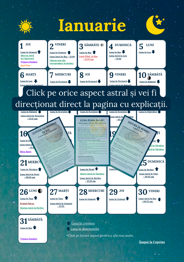 Cel mai detaliat calendar astrologic digital, creat pentru a fi folosit rapid si intuitiv, direct de pe telefon, tableta sau laptop.